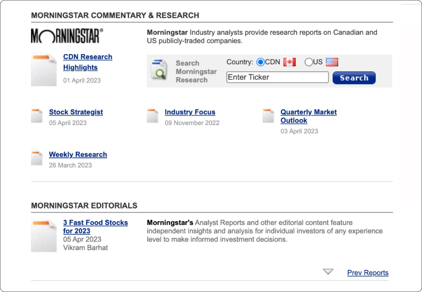 Morningstar Commentary & Reports Module: