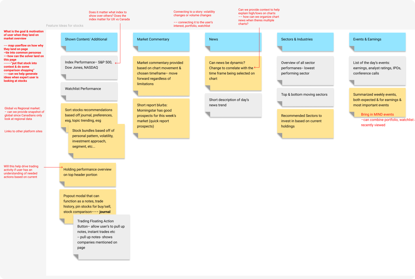 ⏷ Several mind map exercises were done to replicate the investor mindset when trading with sentiment, these exercises were necessary to capture the exact pain points we hoped to design for.