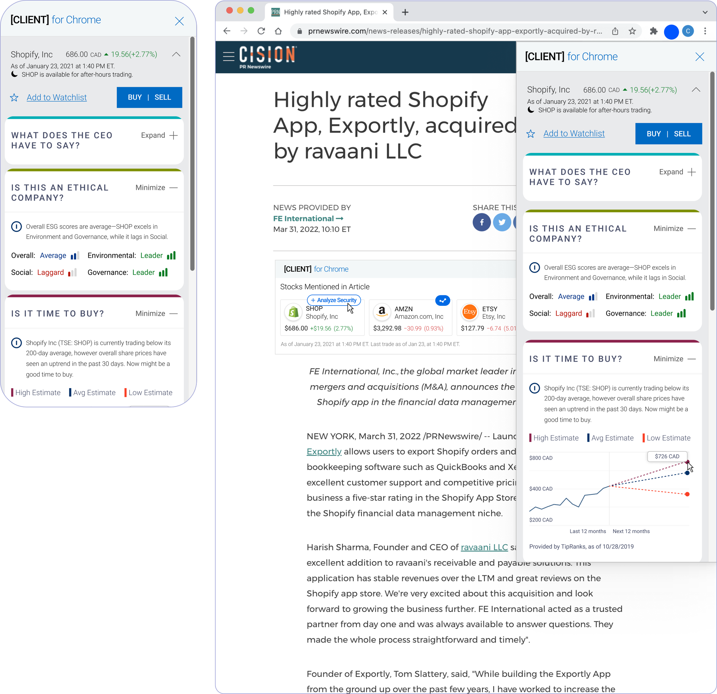 ⏵ Expanding social sentiment to a browser widget allows investors to continue with their research beyond the platform. Having a client branded widget available for users to rely on even if they’re researching on competitor sites, further anchoring the users to be dependent on the client’s unique data.